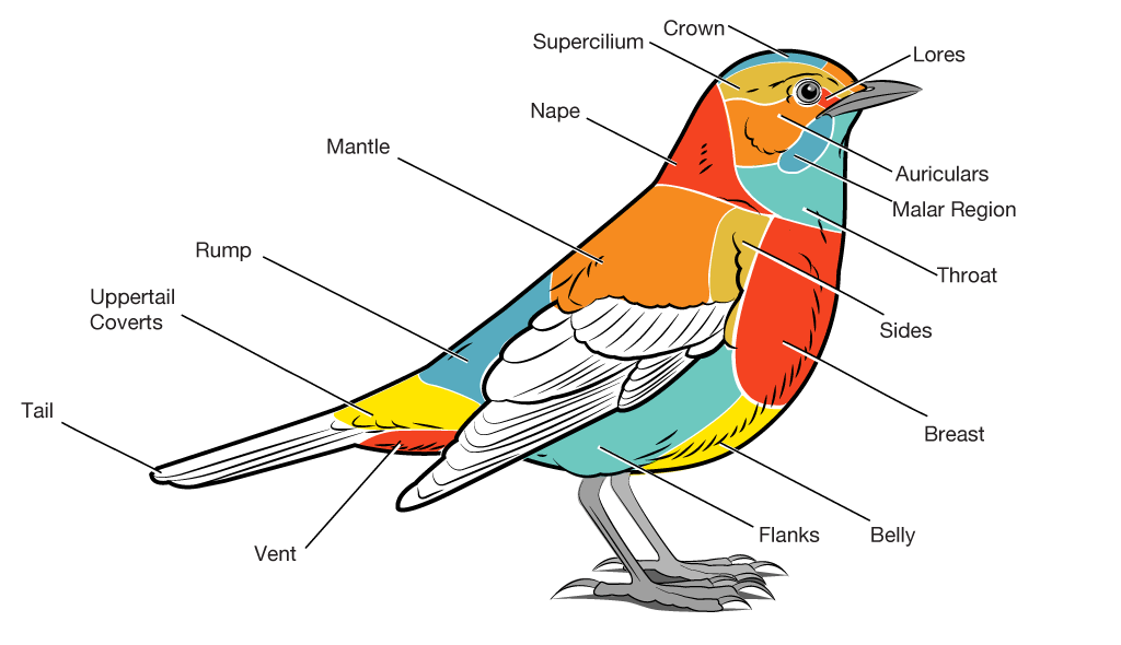 Hình ảnh minh họa các bộ phận trên cơ thể chim