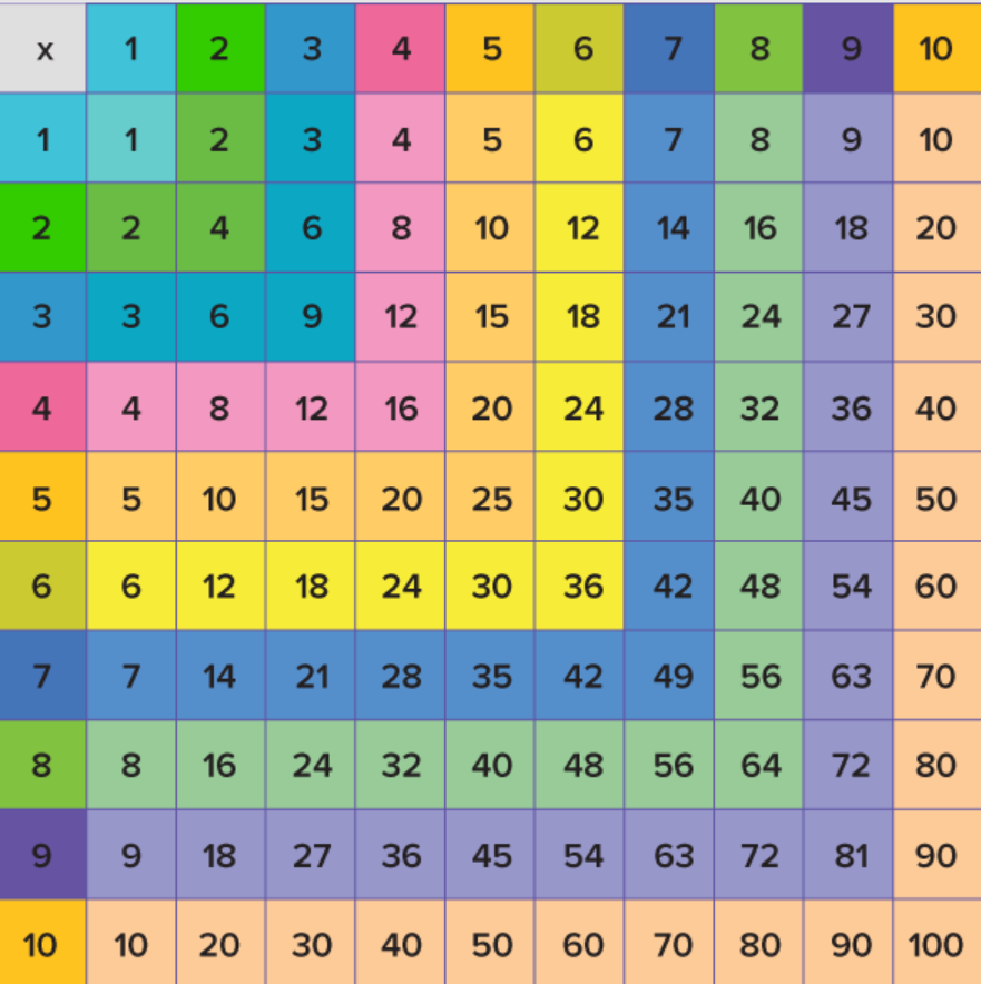 ( Hình ảnh về bảng cửu chương trong tiếng Anh)