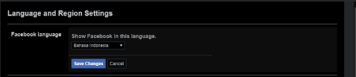 Bước 4: Trong mục Facebook Language - Ngôn ngữ trên Facebook > Edit - Chỉnh sửa > chọn Bahasa Indonesia > chọn Save