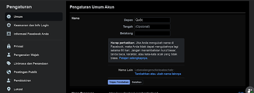 Giờ bạn thử đổi tên Facebook xem được chưa nhé. Nếu vẫn hiện thông báo phải chờ 60 ngày thì bạn làm theo cách thứ 2 dưới đây.