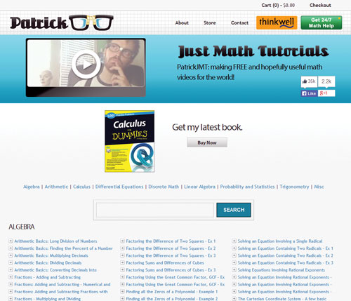 Tương tự như Khan Academy, trang web PatrickJMT cũng có nguồn tài nguyên phong phú về các chủ đề liên quan đến toán học. Mọi bài toán đều được PatrickJMT cung cấp miễn phí dù bạn muốn tìm hiểu về phân số hay muốn ngụp lặn trong thế giới phức tạp của hình học không gian. Website còn cung cấp một số lượng lớn video cho phép kiến thức toán học được truyền tải một cách sinh động, thực tế hơn.