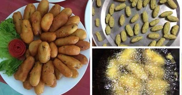 Bước 3: Cho dầu vào chảo và bật lửa đợi sôi. Khi dầu nóng, nhúng hỗn hợp kén đã chuẩn bị qua một lớp bột chiên giòn và bỏ vào chiên. Đợi đến khi vàng đều rồi vớt ra.